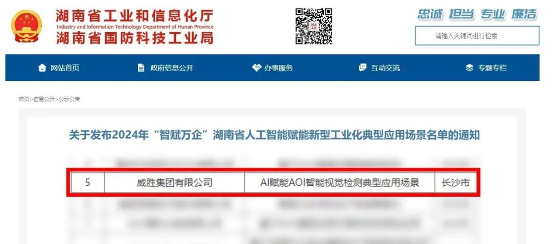 克日 ,湖南省工信厅宣布2024年“智赋万企”湖南省人工智能赋能新型工业化典范应用场景名单 ,新葡萄8883官网的“AI赋能AOI智能视觉检测典范应用场景 ”乐成上榜。